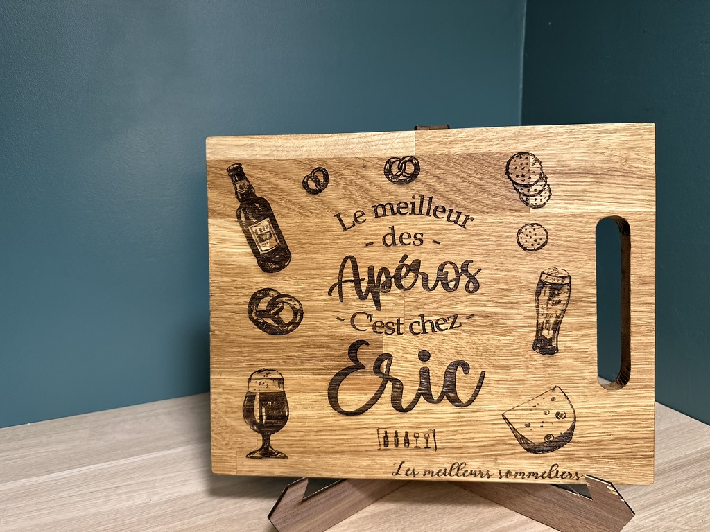 Parcourez notre boutique en ligne et laissez-vous inspirer : T-Shirts, porte-clés, planches apéro gravées, décorations sur mesure, goodies d’entreprise… chaque article raconte une histoire – la vôtre.